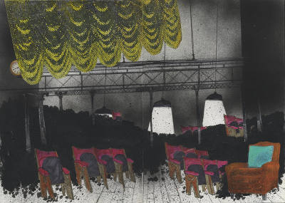 Murray is a hunter-gatherer cutting his way through archives of magazines and periodicals. The sets, props and costumes that will emerge start life as a series of montages on his studio drawing table. These eclectic manifestations pitch characters into dynamic environments that are both familiar and uncanny. They are not illustrations of a scene or event but the reality fragments that the artist sets against one another to probe new avenues of form, content and narrative. The montages are not intended for public consumption, rather they are a method of negotiation and articulation, delivering concepts and a visual aesthetic to the director, actors, lighting designer and technicians.